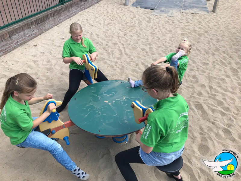De trampolines waren ook steeds druk bezet met groene kinderkoor shirtjes.